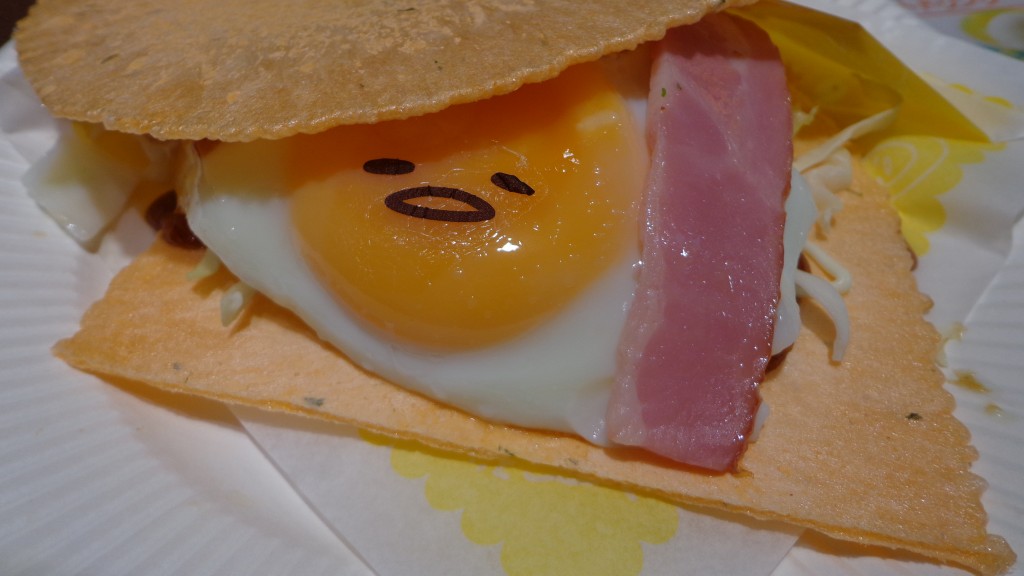 I purchased the most popular dish, Gudesen, which is like Okonomi-yaki on snack. Gudetama is on it of course. Looks lazy somehow.